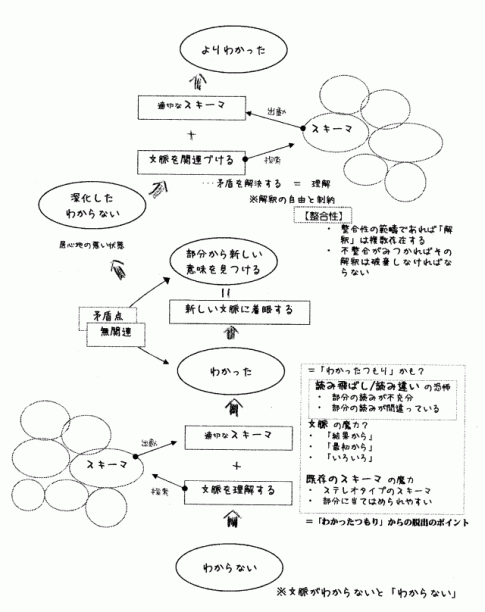 西林氏は、よりよく文章を読もうとする際に障害となるのは「わかった」という状態(わかったつもり)にあると指摘し、この「わかった」状態を壊すことが、よりわかるために不可欠であると指摘しています。一見わかったような(^^;)当たり前のような、それでいて何を言っているのかよくわからないという人もいると思います。